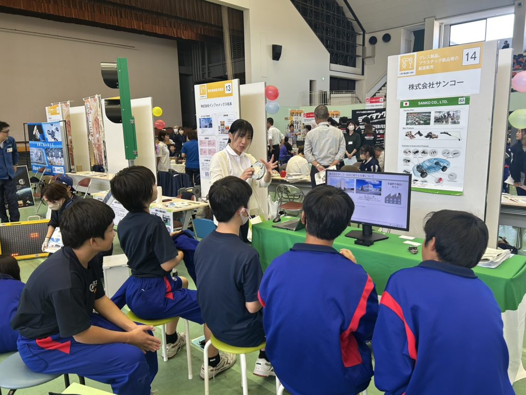 地域貢献活動の一環として、安曇野市中学校キャリアフェスティバルに参加しました。中学生が自らの生き方・働く意味を考えるきっかけになるような「キャリア教育」の一つとして、安曇野市内外の企業が集まり、各ブースで説明を行いました。中学生の皆さんと一緒に、働くということの意義ややりがい、夢について語り合いました。