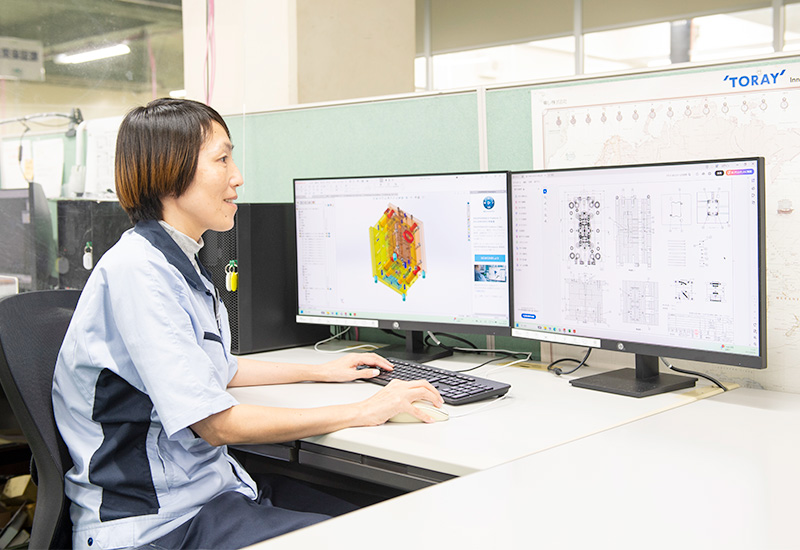 設計の仕事は研修というより、その都度起きる事象や製作物への対応の積み重ねが一番の成長の場です。型を一つ完成させるごとに全てが自分の知識になり、周囲の先輩方はまさにお手本であり辞書のような存在です。